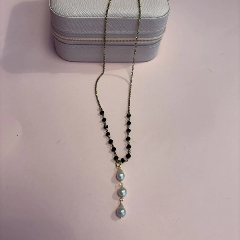Deliziosa – Collana rosario nero con pendente 3 perle in argento 925 gold