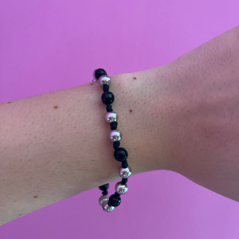 NODINI Bracciale con sfere di onice sfaccettato e argento 925 placcato rodio.